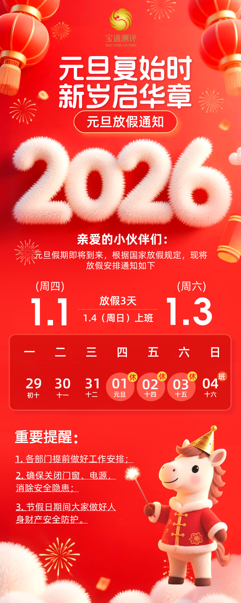 元旦放假通知